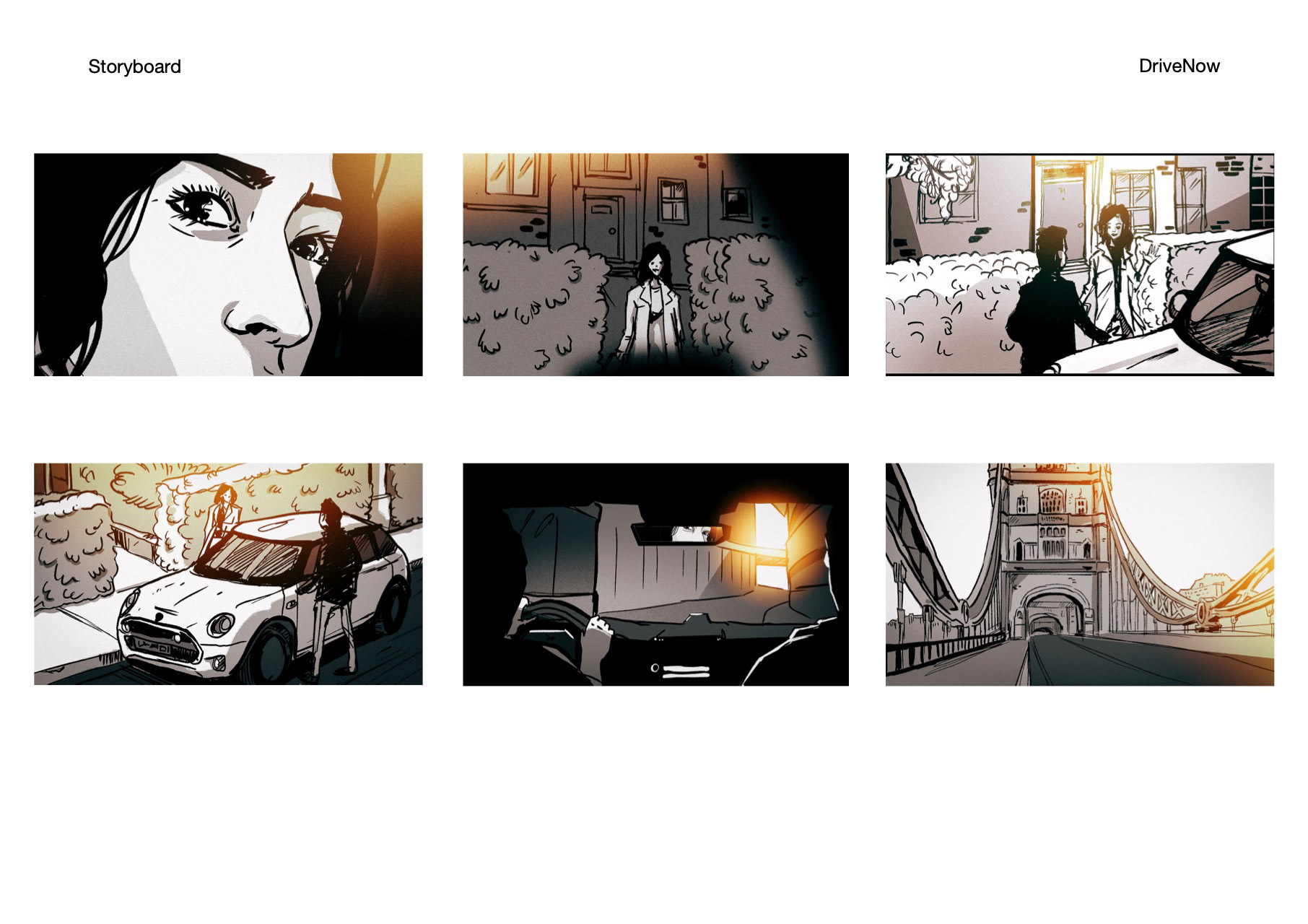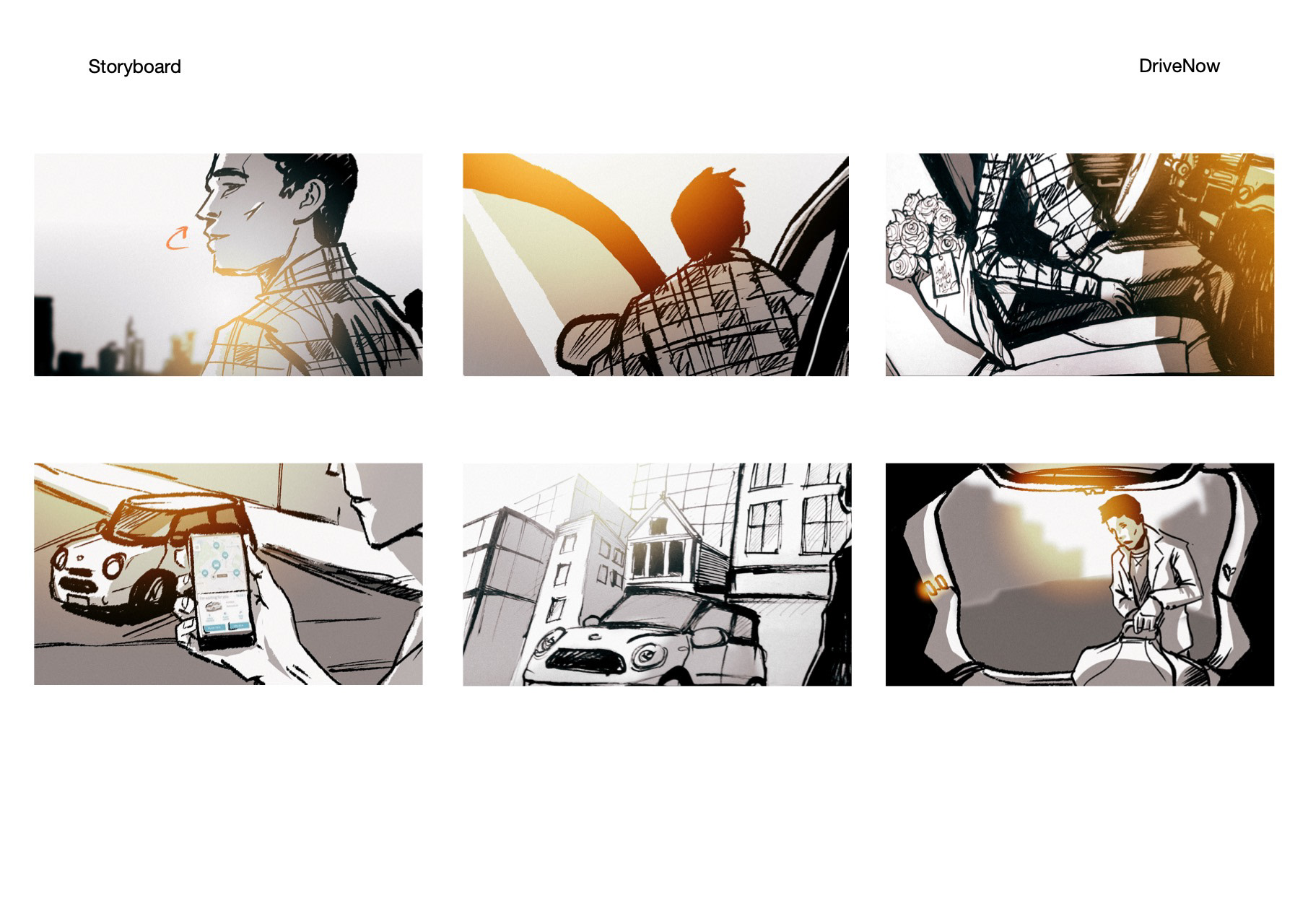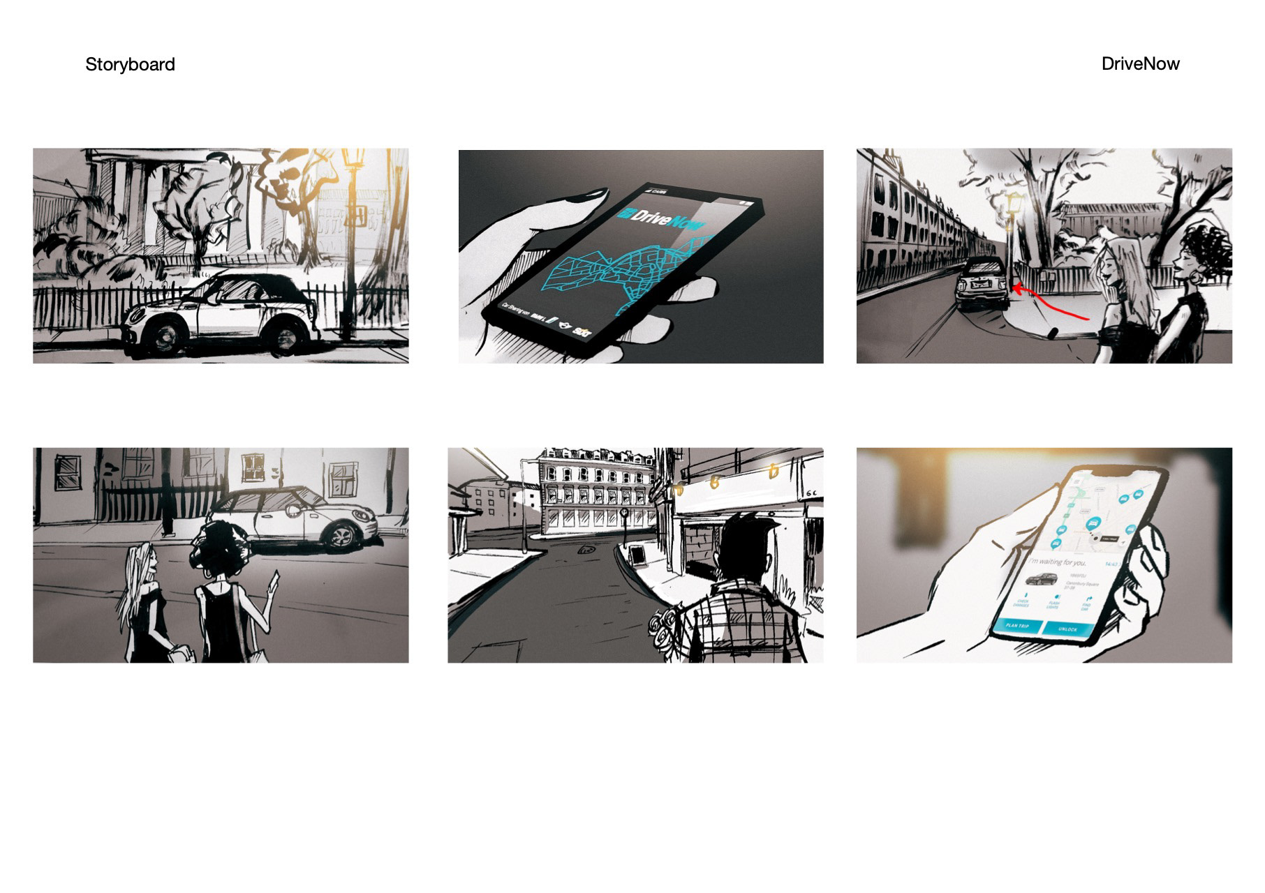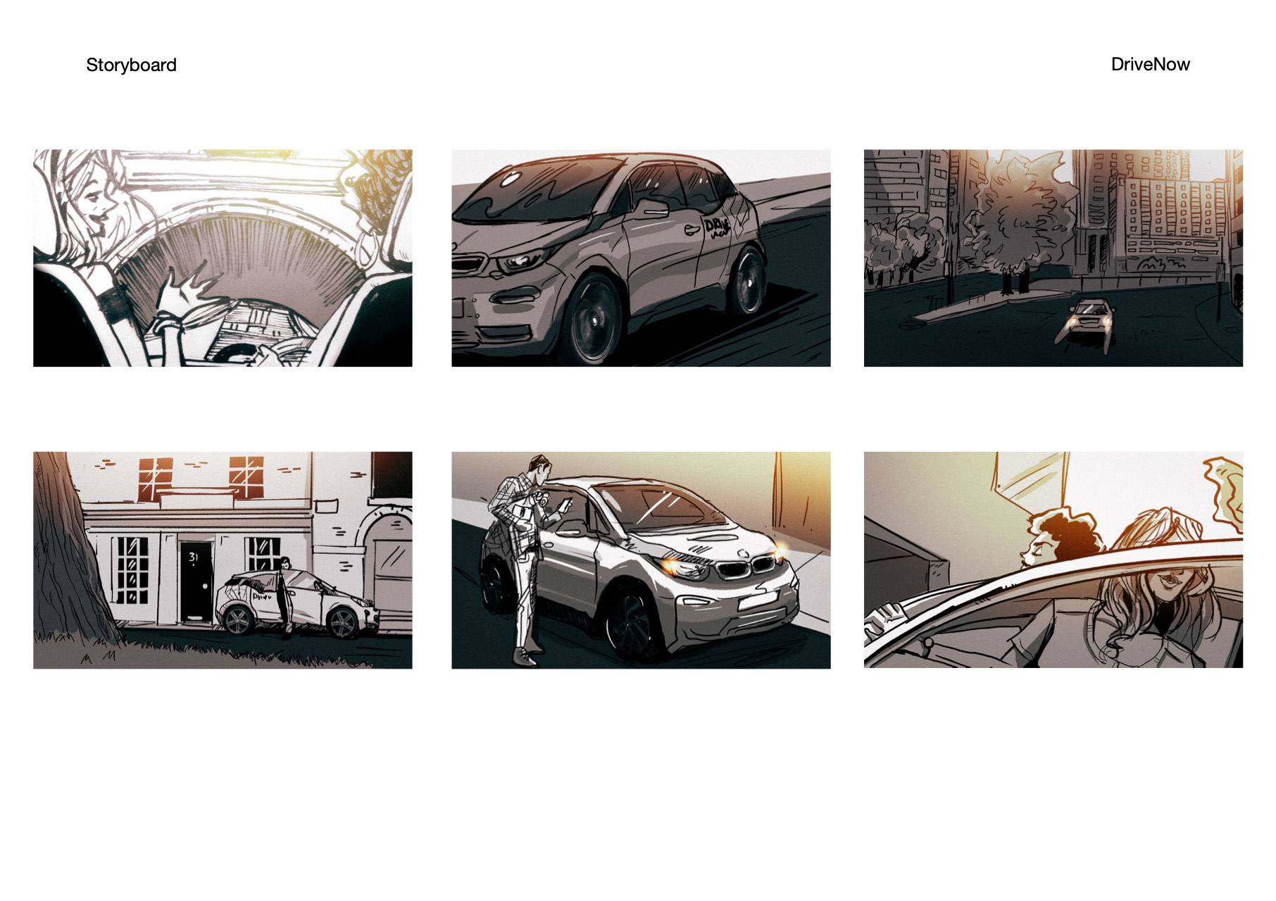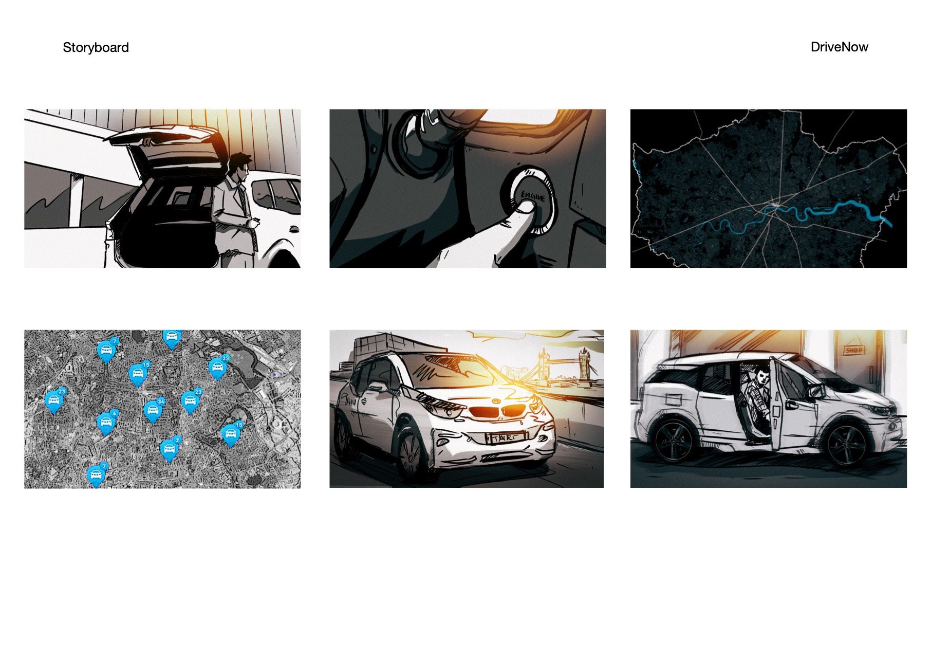 A Storyboard I made as my first freelance gig in London, working on a tvc ad for DriveNow.
